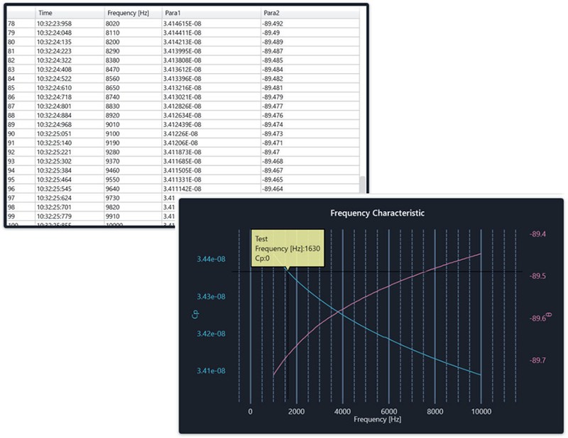 测试項目Z, Y, θ, X, G, B, Q, Rs, Rp, Ls, Lp, Cs, Cp, D
