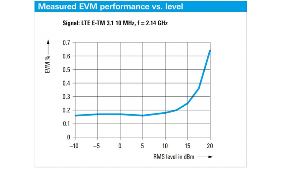 对于20 MHz LTE信号,即使在高输出功率水平下,EVM性能也达到0.2%。