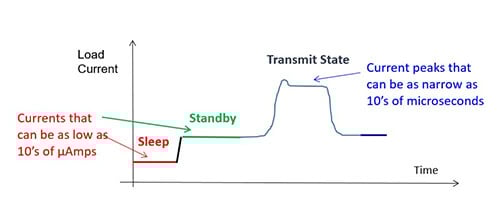 DMM7510 的数字化器可以测量所有 IoT 设备操作状态下的漏电流。 结合利用高分辨率、高速数字化器的灵敏快速电流测量,捕获 µA 睡眠模式电流和高达 1A 的传输电流。