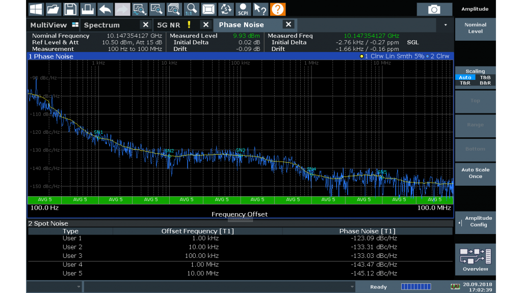 R&S®FSW-K144和R&S®FSW-K145选项包括在下行链路和上行链路中3GPP 5G NR的带内测量。对每个信号子帧进行了分析,给出了各种测量结果,包括不同信道和信号的EVM、频率和功率。