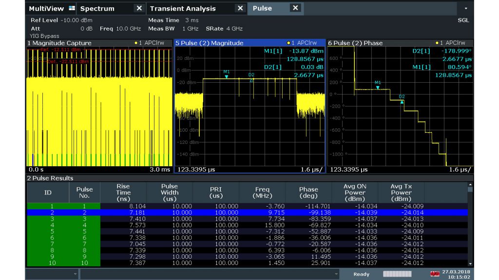除了其宽的分析带宽(高达8.3GHz),R&S®FSW提供的分析功能对雷达测试至关重要。